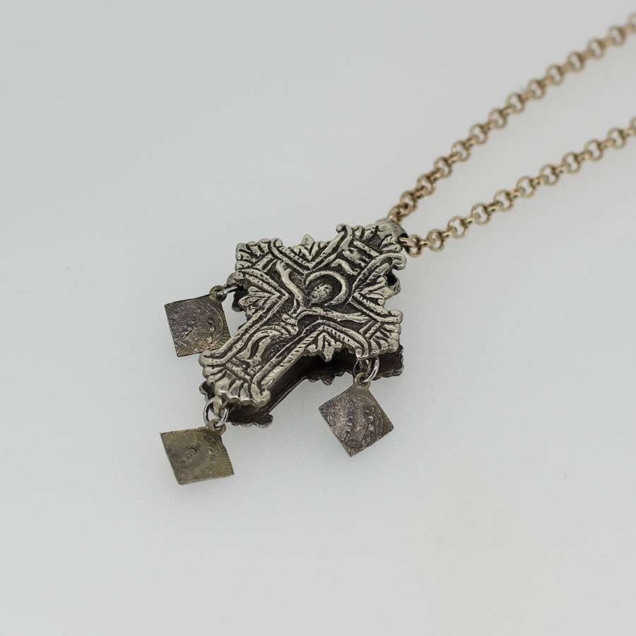 Ο σταυρός αποτελείται απο δυο κομμάτια που ενώνονται με βίδες.Μπορεί να ανοίξει και να μπει φυλαχτό