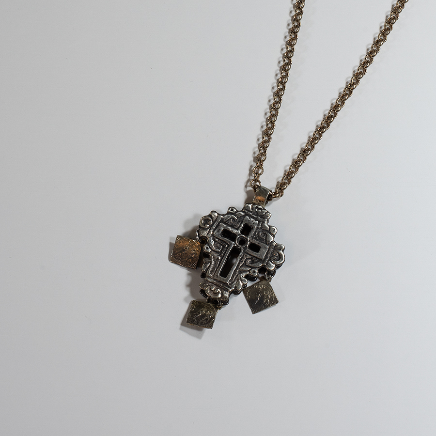 Ο σταυρός αποτελείται απο δυο κομμάτια που ενώνονται με βίδες.Μπορεί να ανοίξει και να μπει φυλαχτό