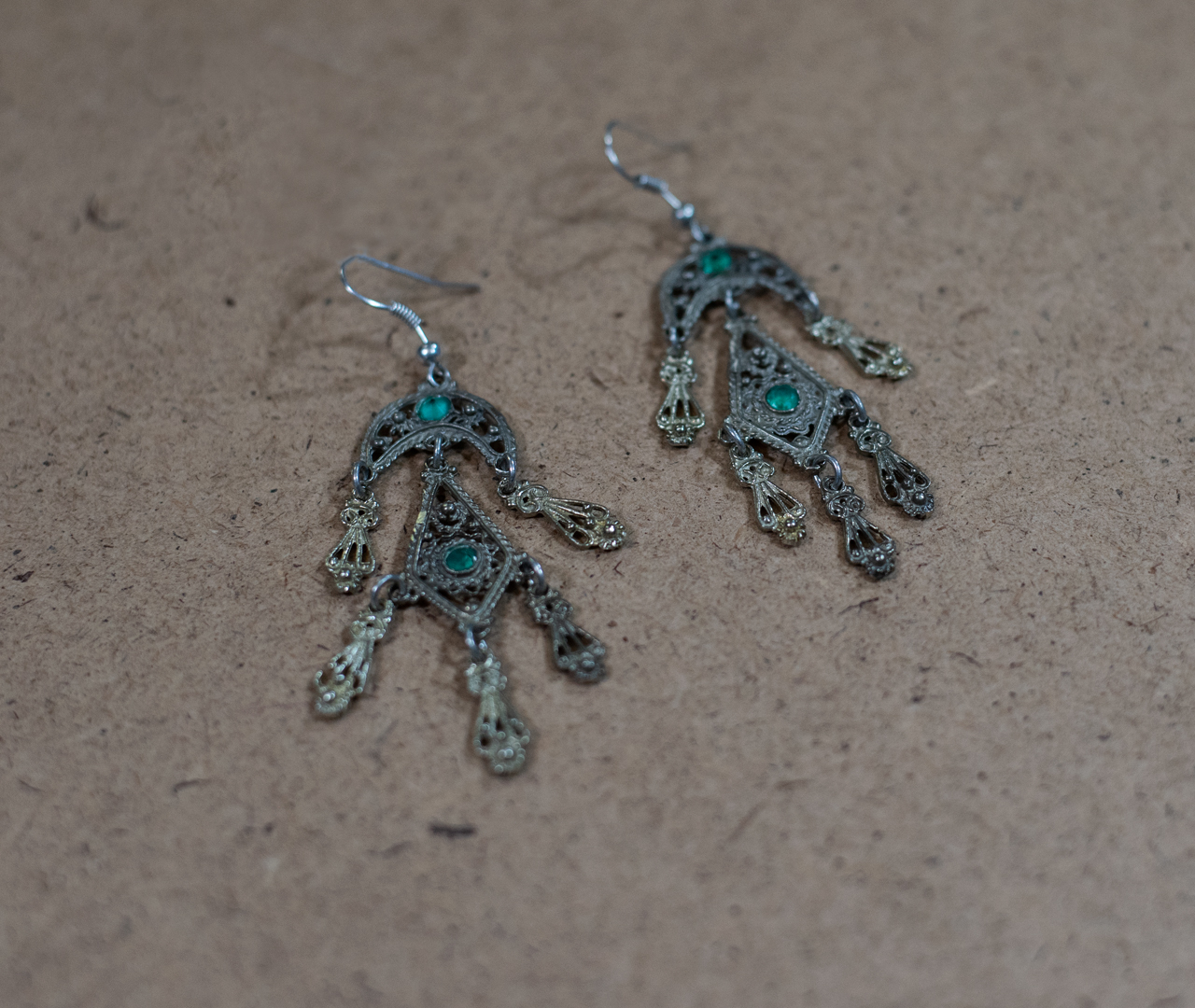 - Σκουλαρίκια-Γιαννιώτικα από μπρούτζο , με πράσινες πέτρες , καρφωμένες στο χέρι (όχι κολλημένες) .