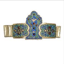 - Πόρπη - ζώνη Θράκης από μπρούτζο και διαστάσεις : 22 cm x 13 cm , διακοσμημένη με σκαλιστά σχέδια και κόκκινες πέτρες . Με 30 σπονδύλους περασμένους σε λάστιχο .